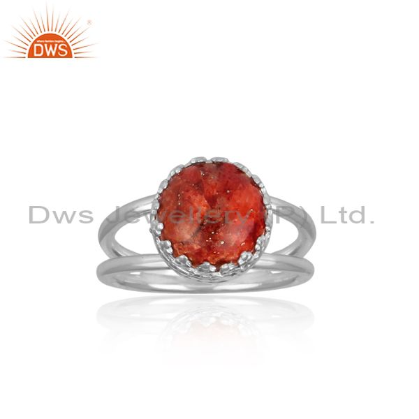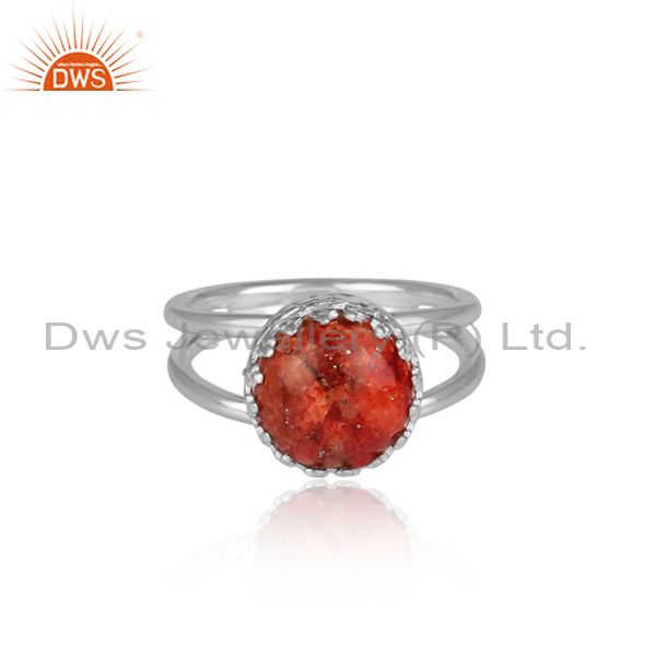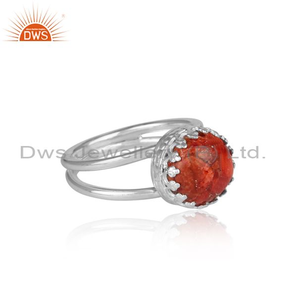 Sponge Coral Set Fine Sterling Silver Designer Crown Ring