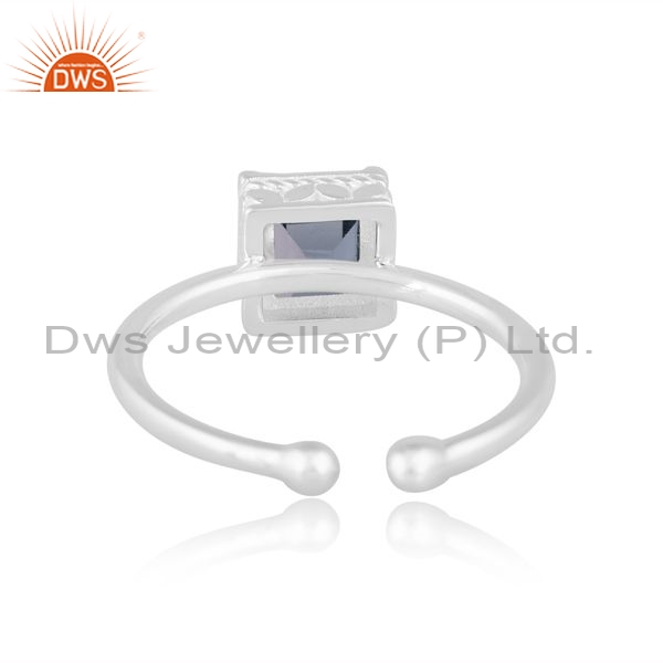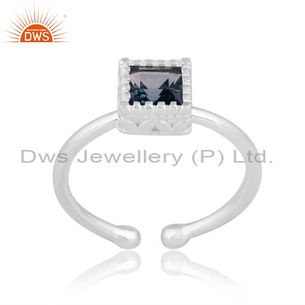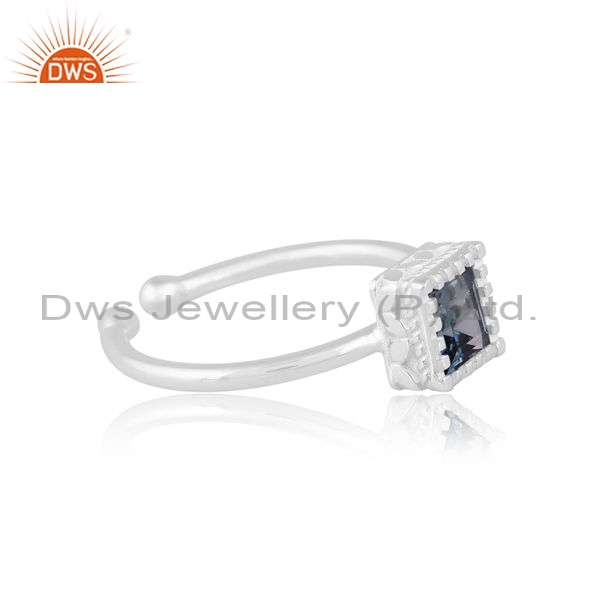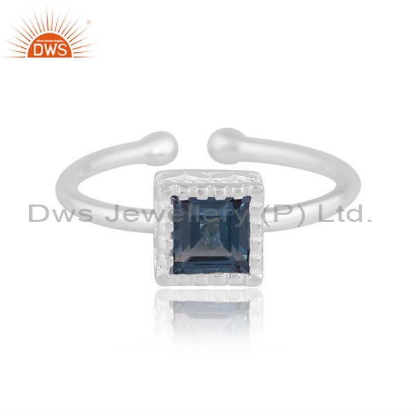 Square Cut Adjustable Silver Ring With London Blue Topaz