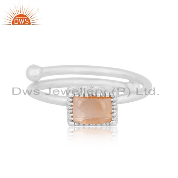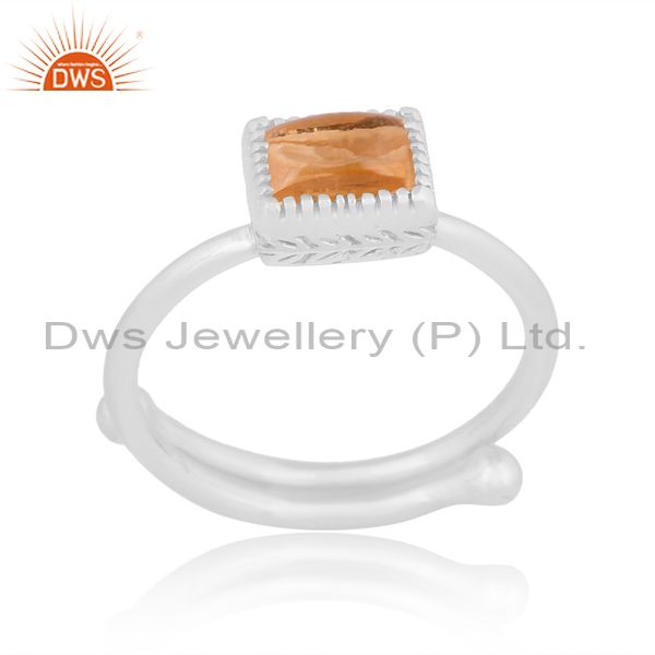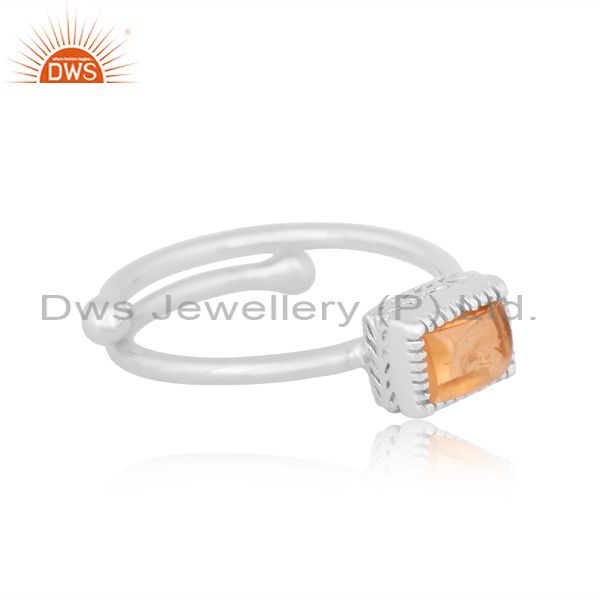 Square Cut Citrine Set Fine 925 Sterling Silver Ring