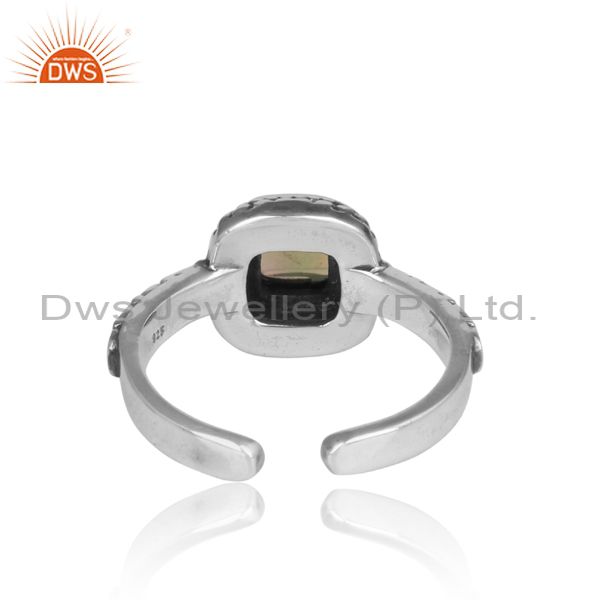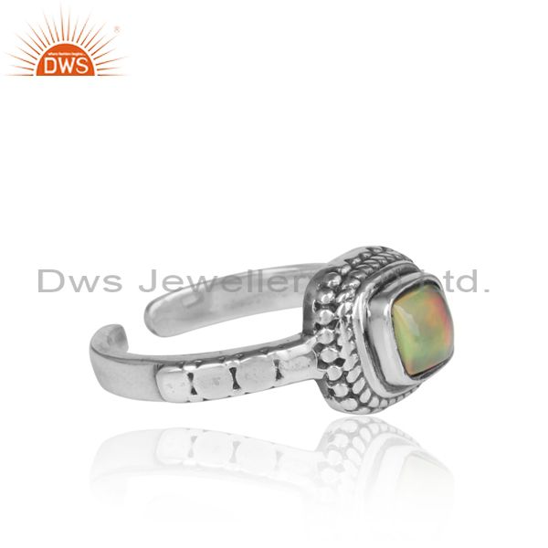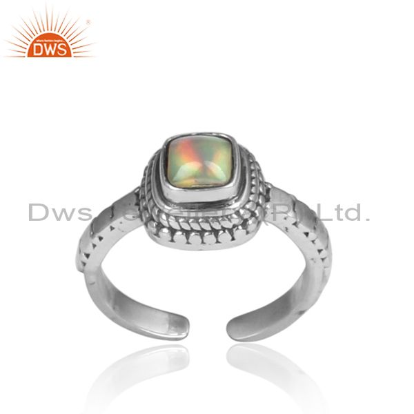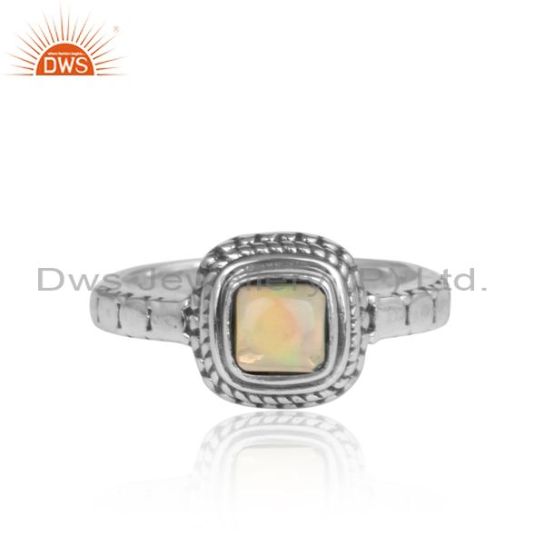 Square Cut Ethiopian Opal Set Oxidized Silver Handmade Ring
