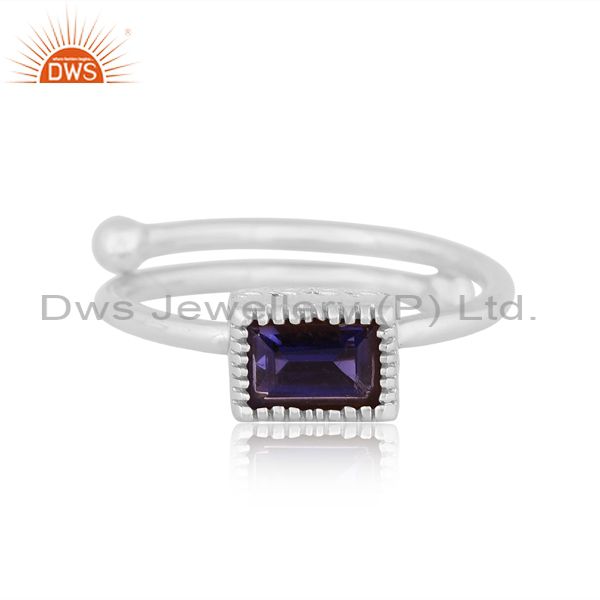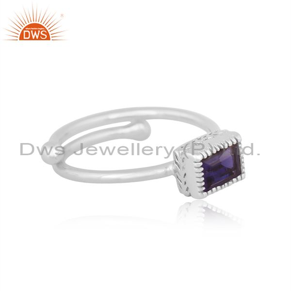 Square Cut Iolite Fine 925 Sterling Silver Ring
