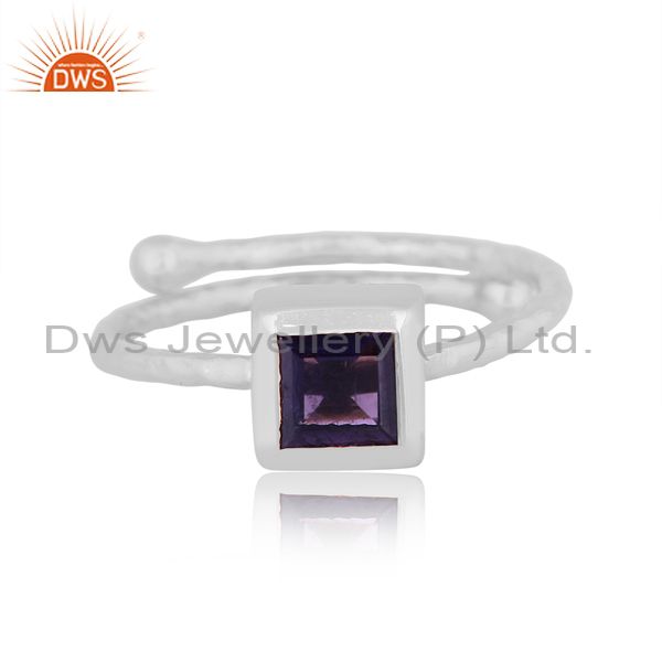 Square Cut Iolite Set Fine 925 Silver Crown Design Ring