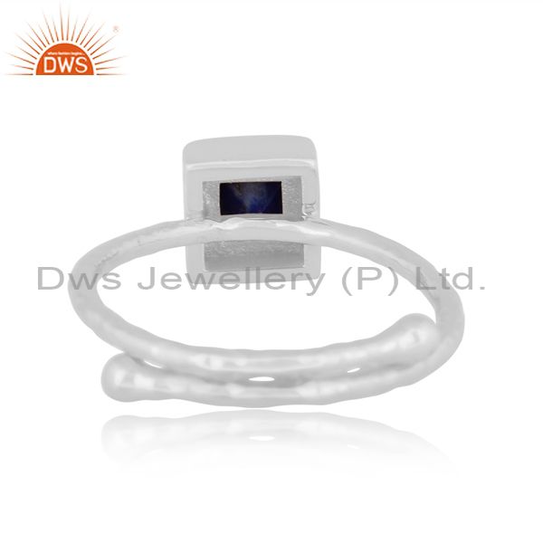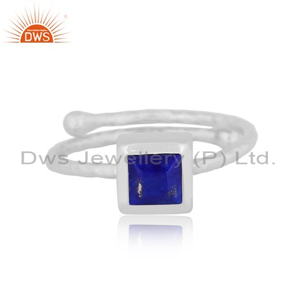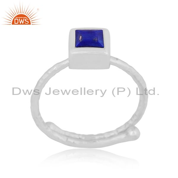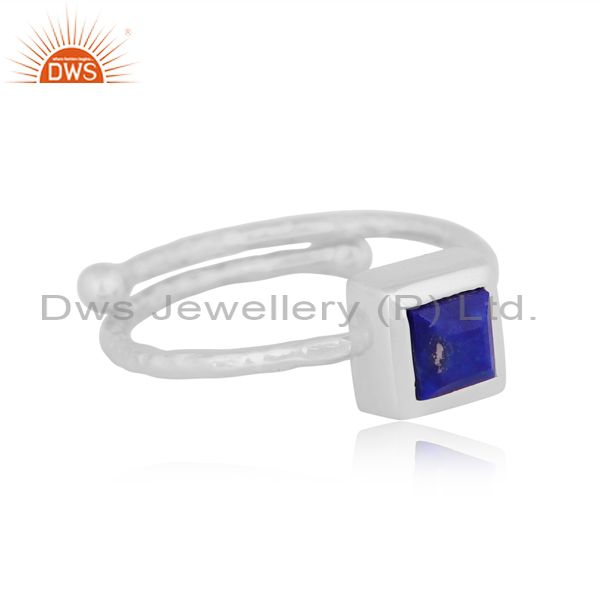 Square Cut Lapis Set Fine 925 Silver Designer Crown Ring