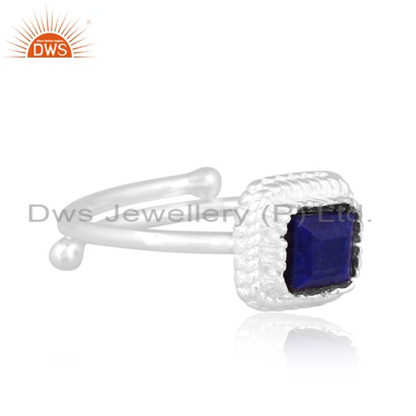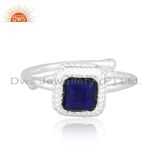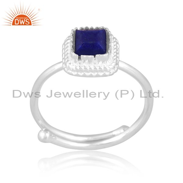 Square Cut Lapis Set Fine 925 Silver Handmade Fancy Ring