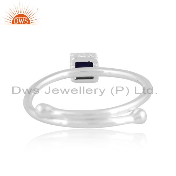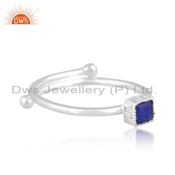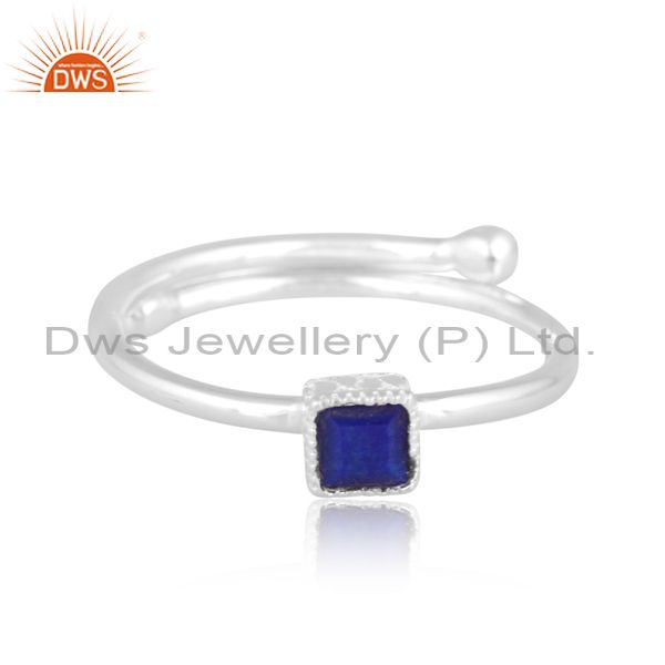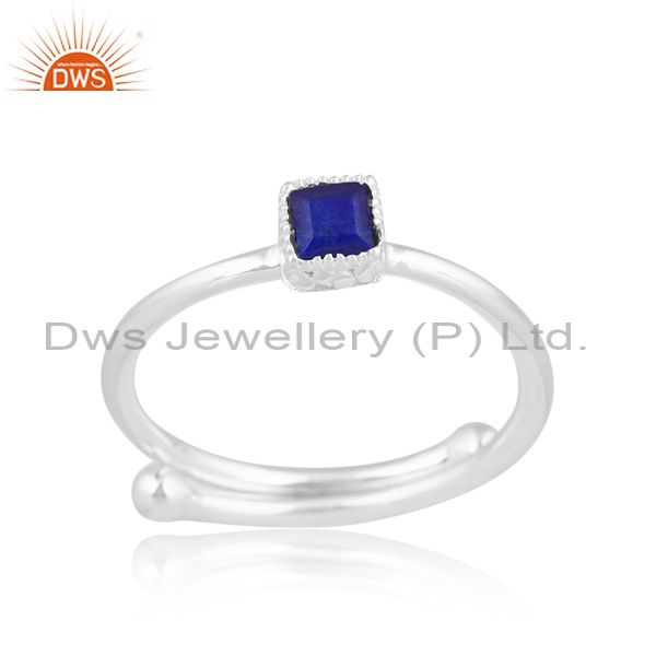 Square Cut Lapis Set Fine 925 Sterling Silver Crown Ring