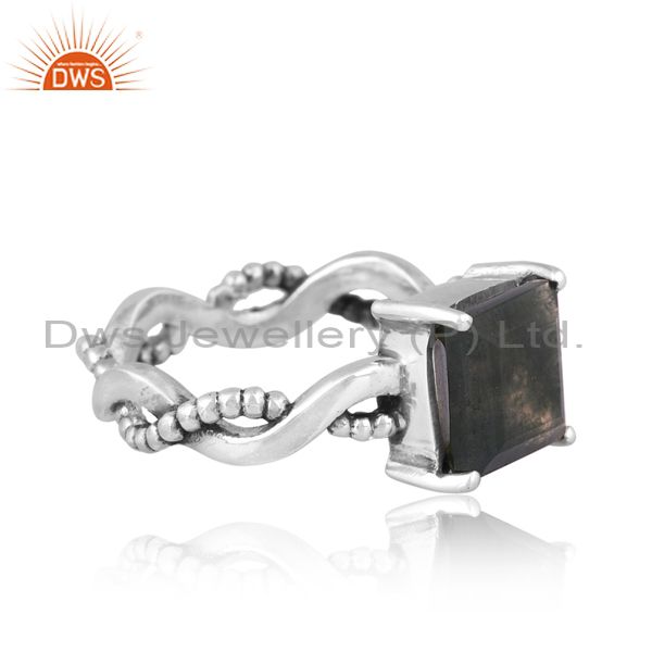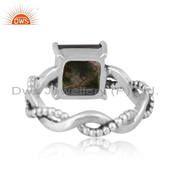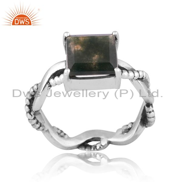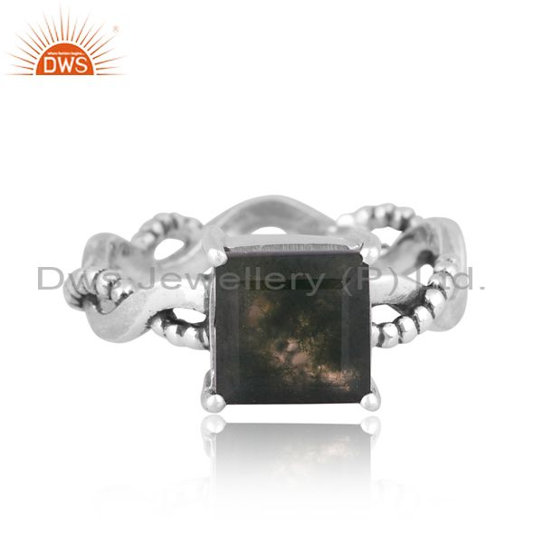 Square Cut Moss Agate Set Oxidized 925 Sterling Silver Ring