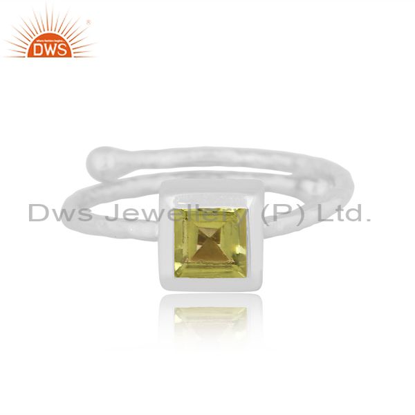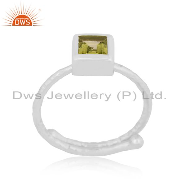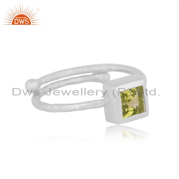 Square Cut Peridot Set Fine 925 Silver Designer Crown Ring
