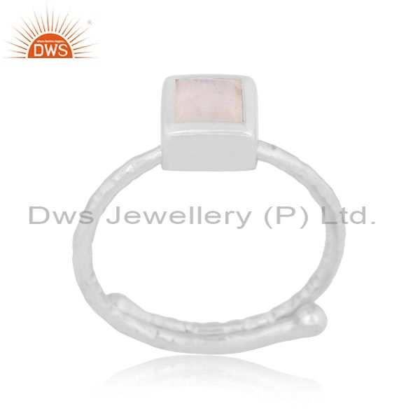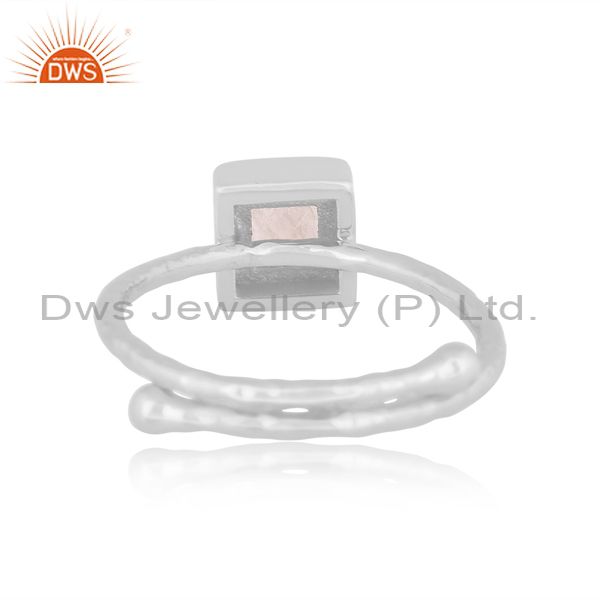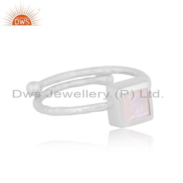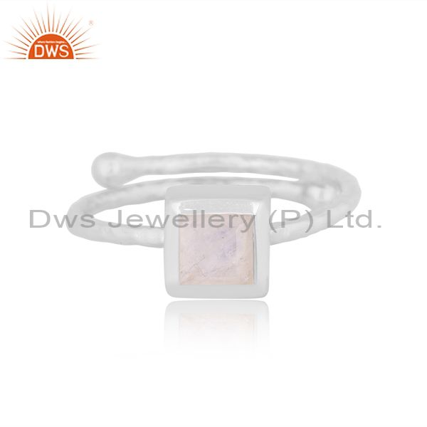 Square Cut Rainbow Moon Stone Set Fine Silver Classic Ring