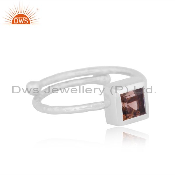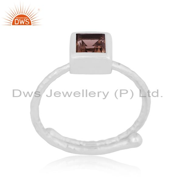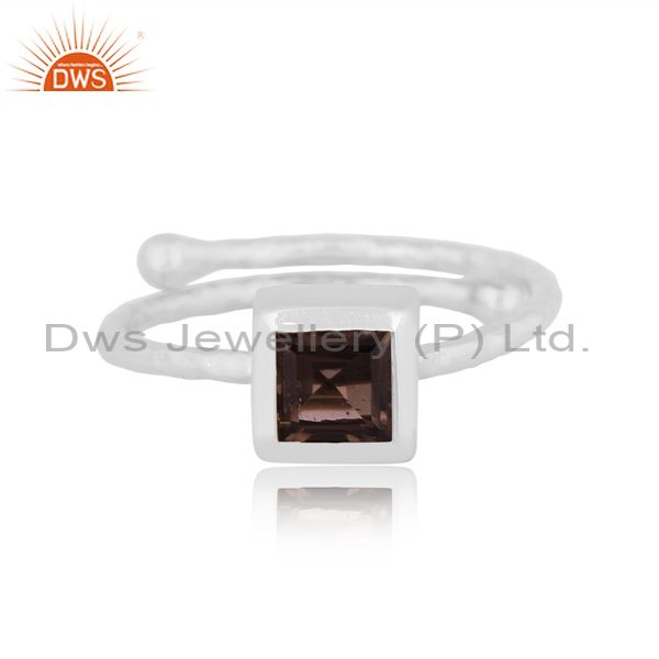 Square Cut Smoky Set Fine 925 Sterling Silver Classic Ring