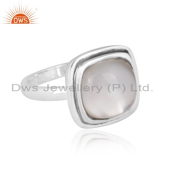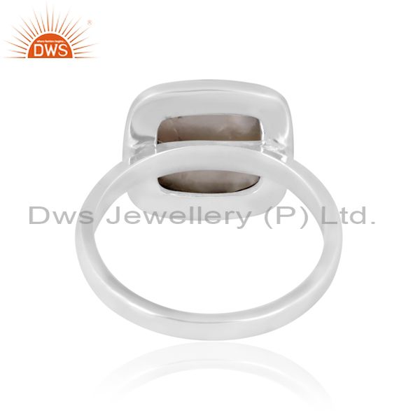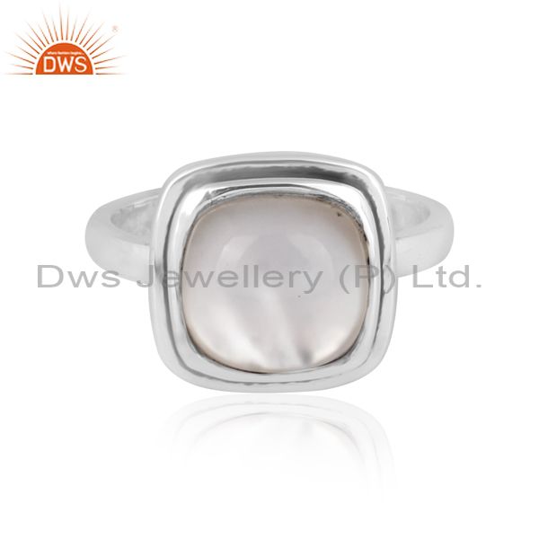 Square Doublet Mother Of Pearl Crystal Oxidized Silver Ring