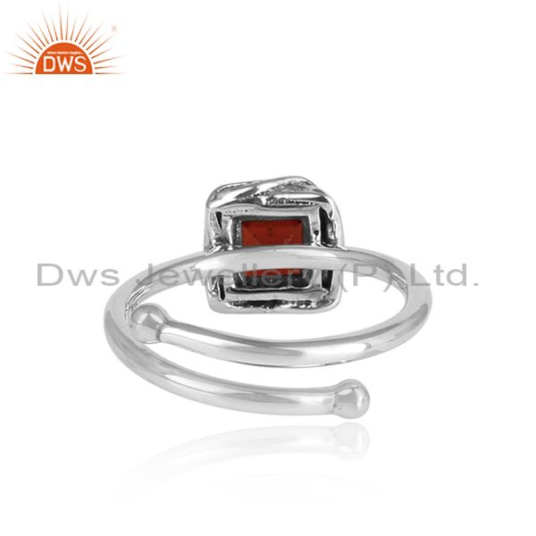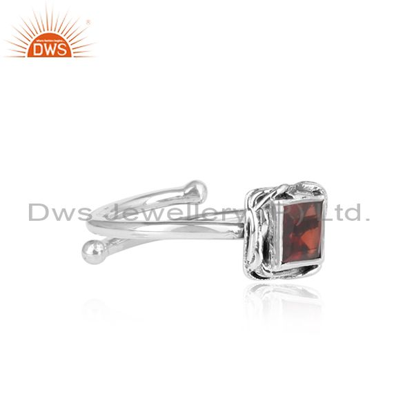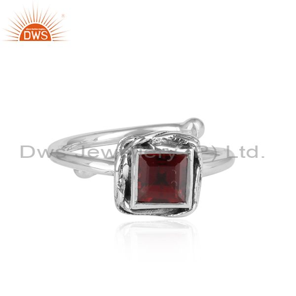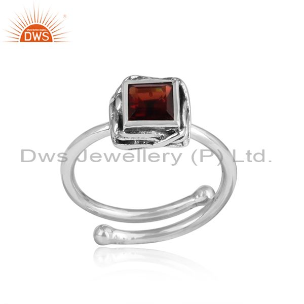 Square Garnet Cut Sterling Silver Oxidized Ring