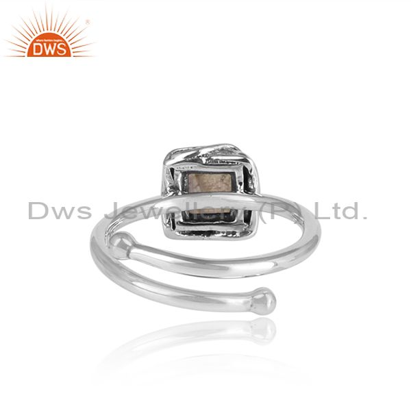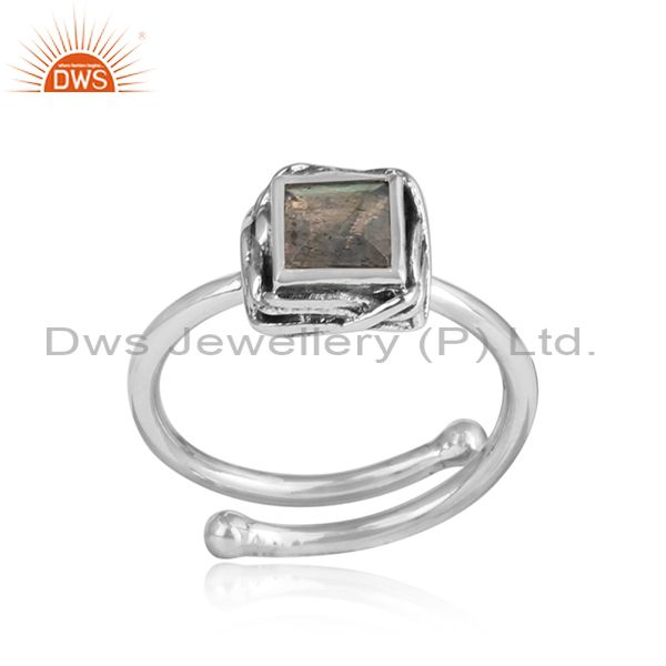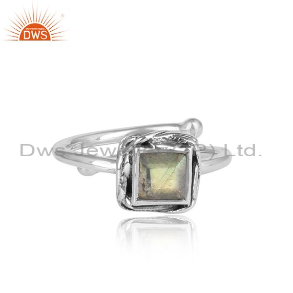 Square Labradorite Set In Oxidized Sterling Silver Ring