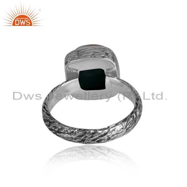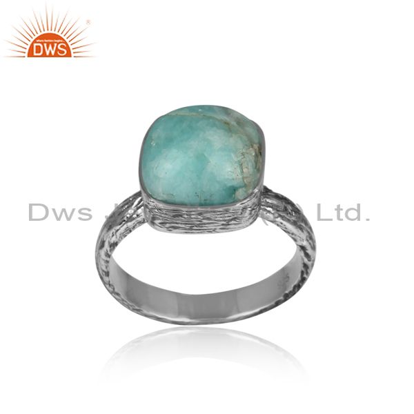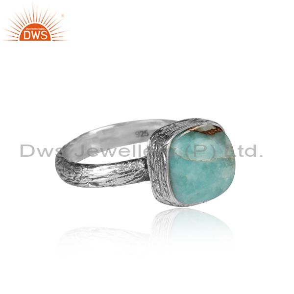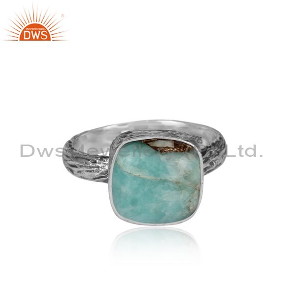 Square Mojave Copper Amazonite Oxidized Silver Textured Ring