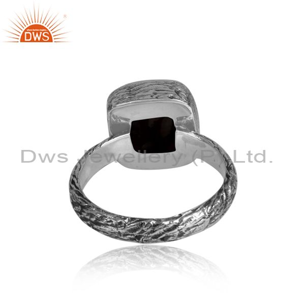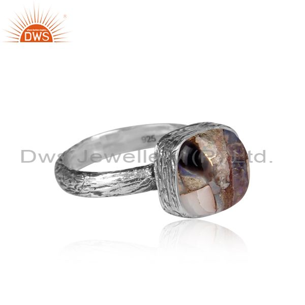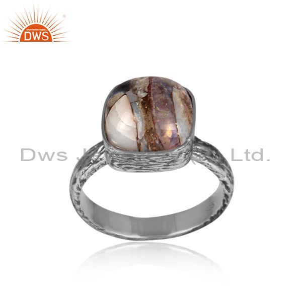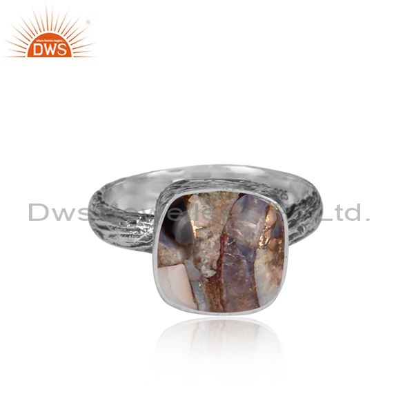 Square Mojave Copper Ethiopian Opal Oxidized 925 Silver Ring