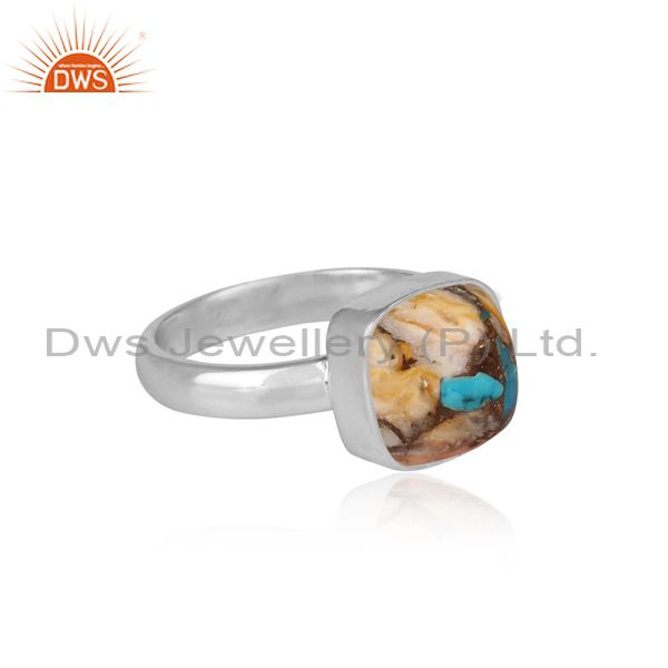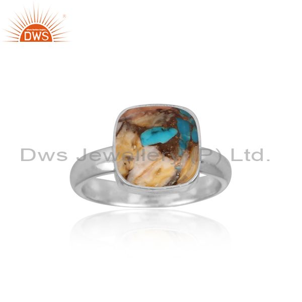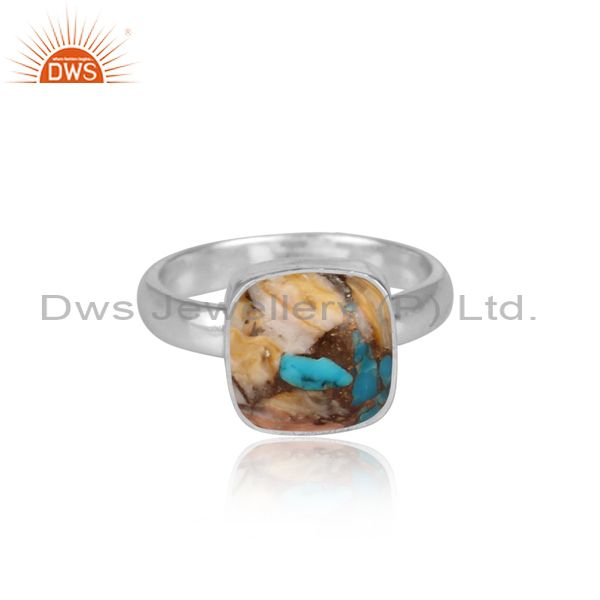 Square Mojave Copper Oyster Turquoise Set Fine Silver Ring