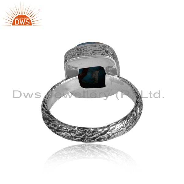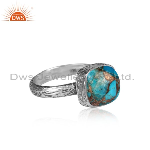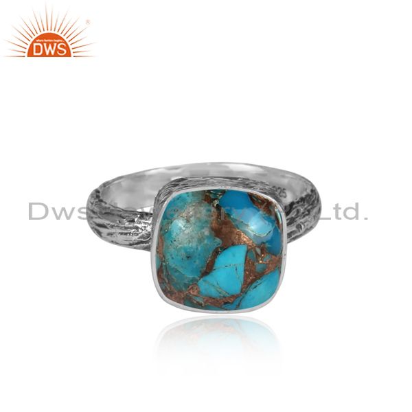 Square Mojave Copper Turquoise Oxidized Silver Textured Ring