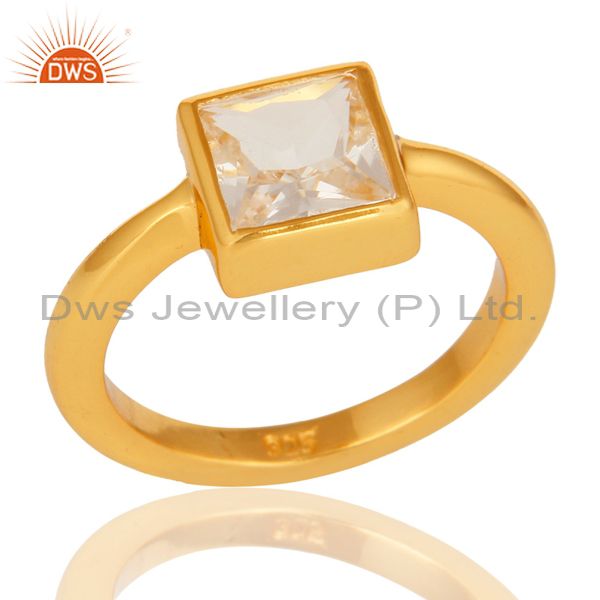 Square Princess Cut Crystal Quartz 14K Yellow Gold Plated Sterling Silver Ring