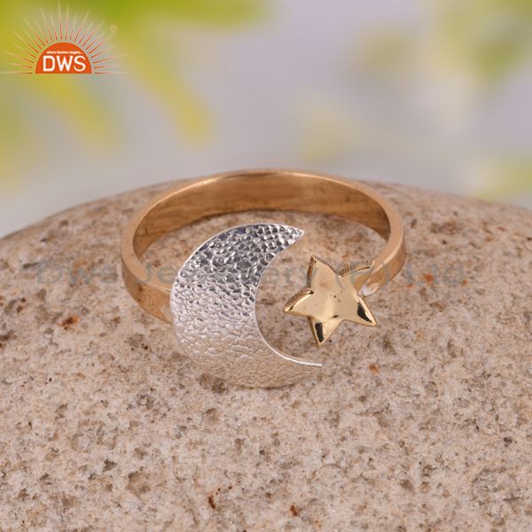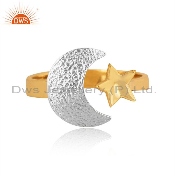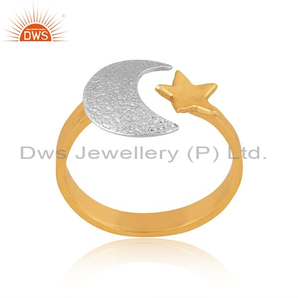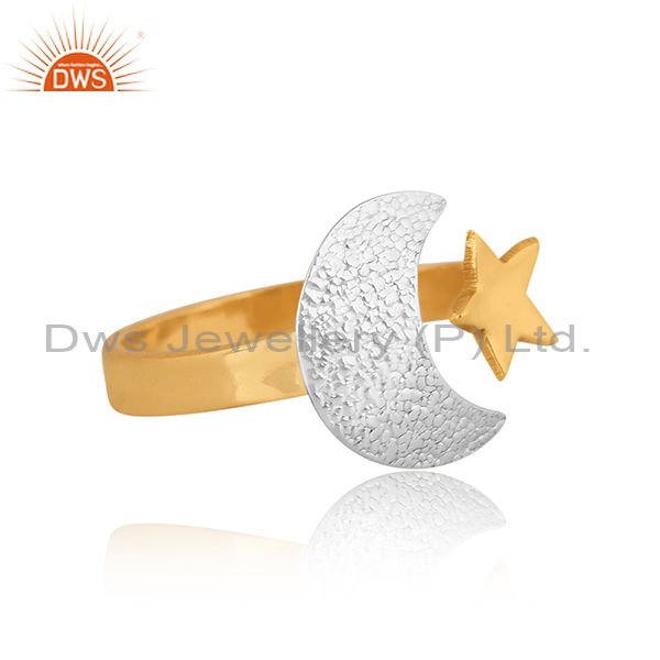 Star And Moon Brass Gold And White Handmade Designer Ring