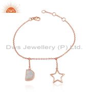 Star Design Rose Gold Plated Silver Rainbow Moonstone Rings