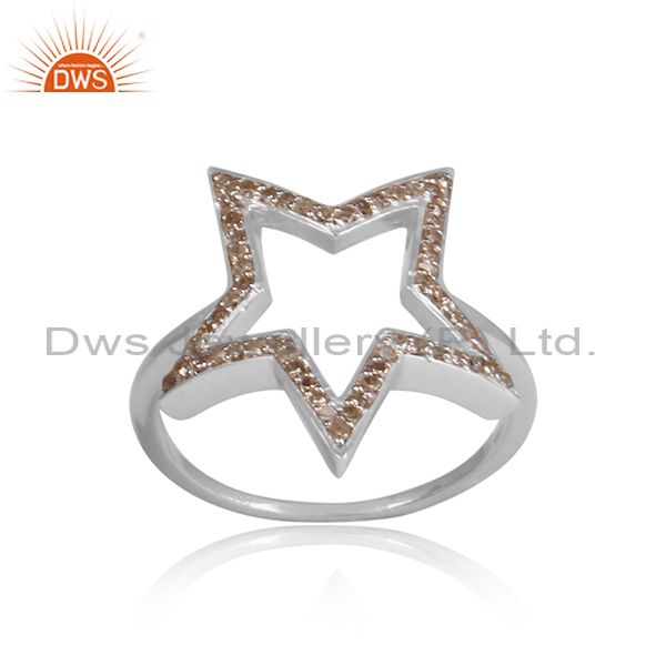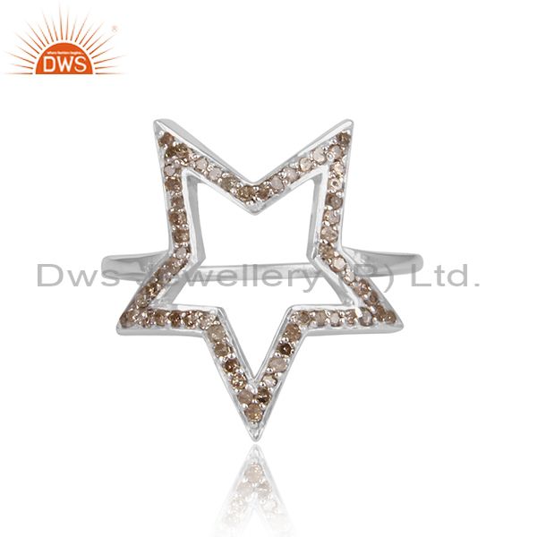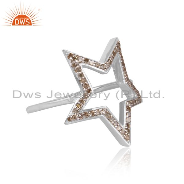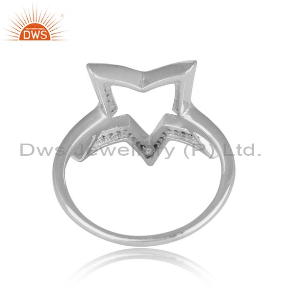 Star Shaped Fine Silver On White Rhodium Diamond Fancy Ring