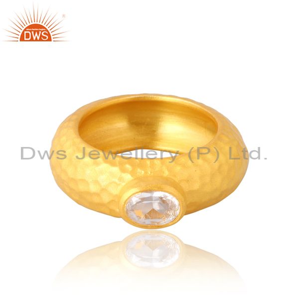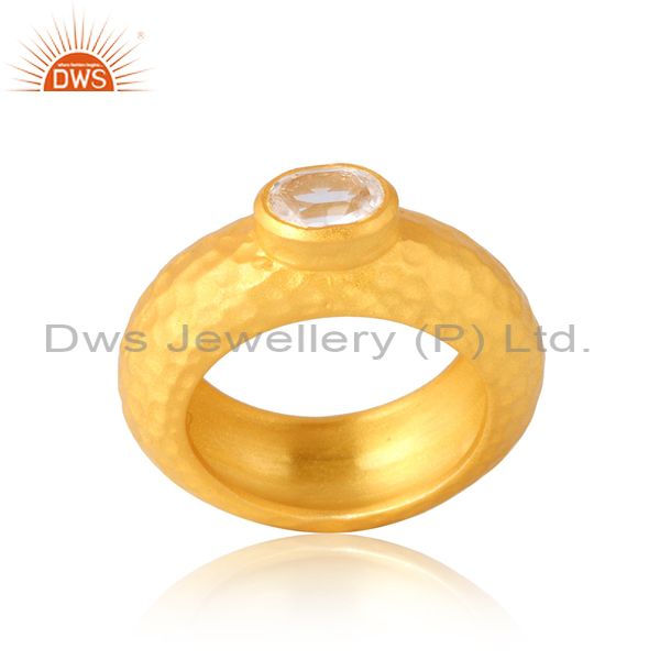 Statement Ring Women In Crystal Quartz And Wide Band Silver
