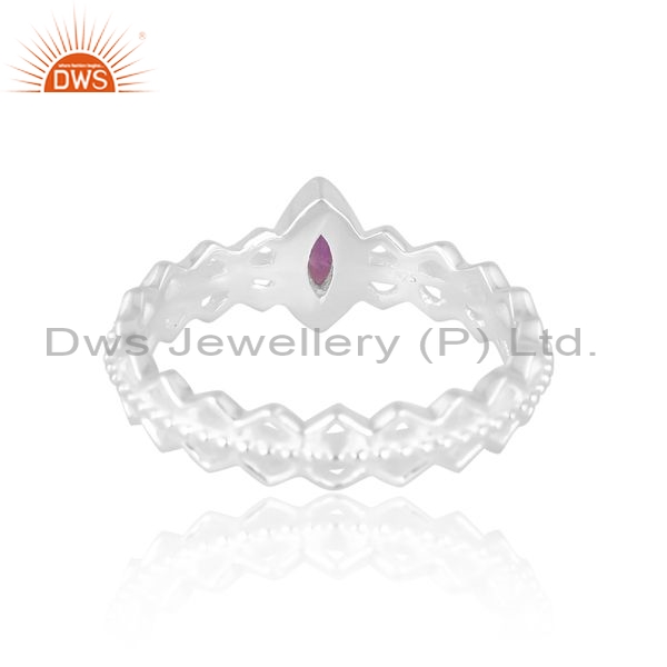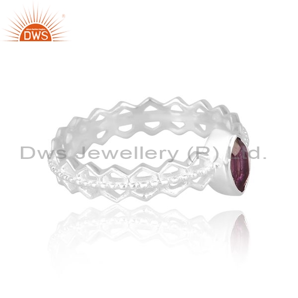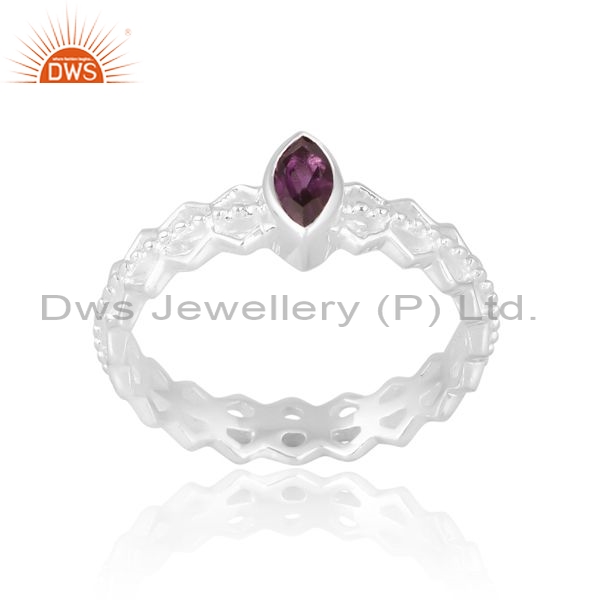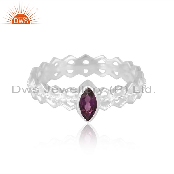 Sterling Silver White Ring With Amethyst Matrquise Cut