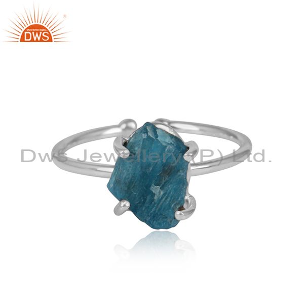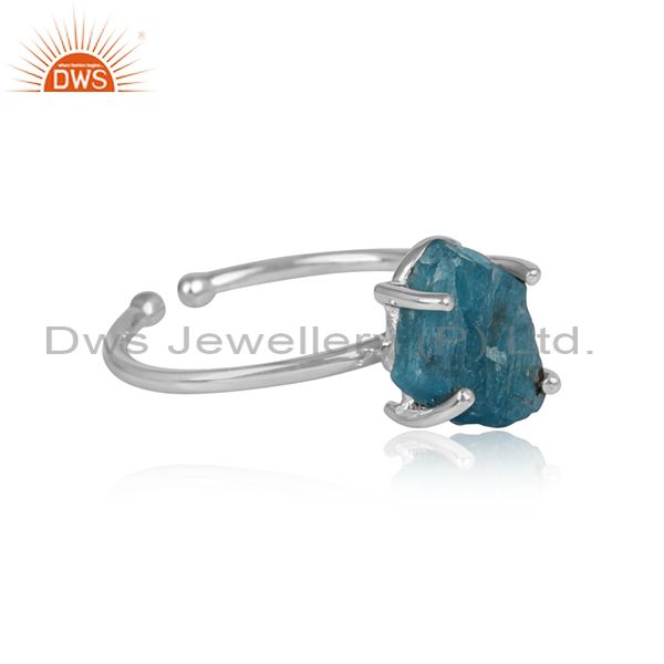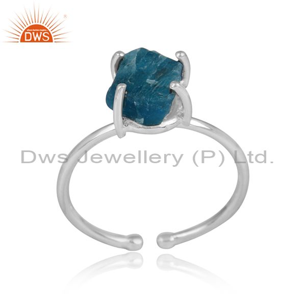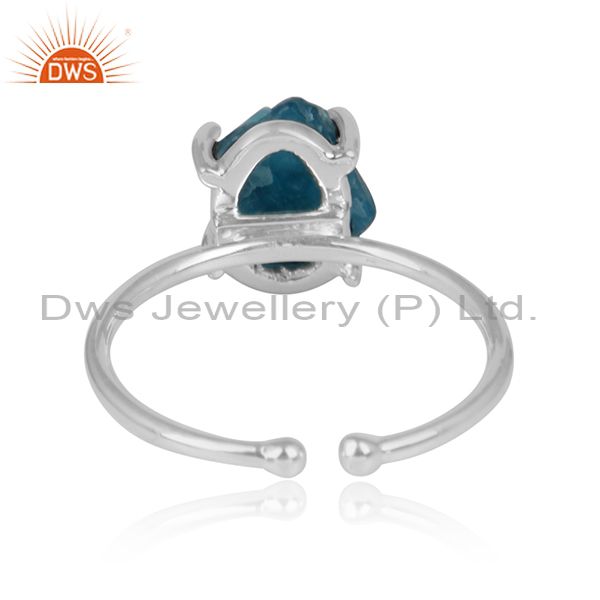 Sterling Fine Silver Prong Set Neon Apatite Gemstone Ring Jewelry