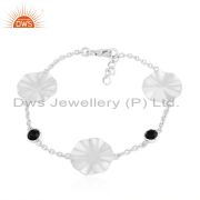 Sterling Fine Silver Wavy Disc Designer Black Onyx Gemstone Rings