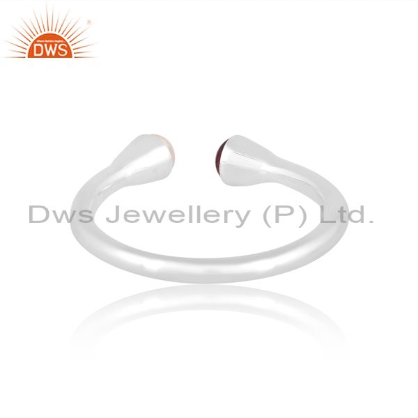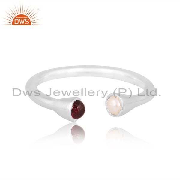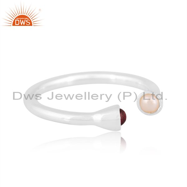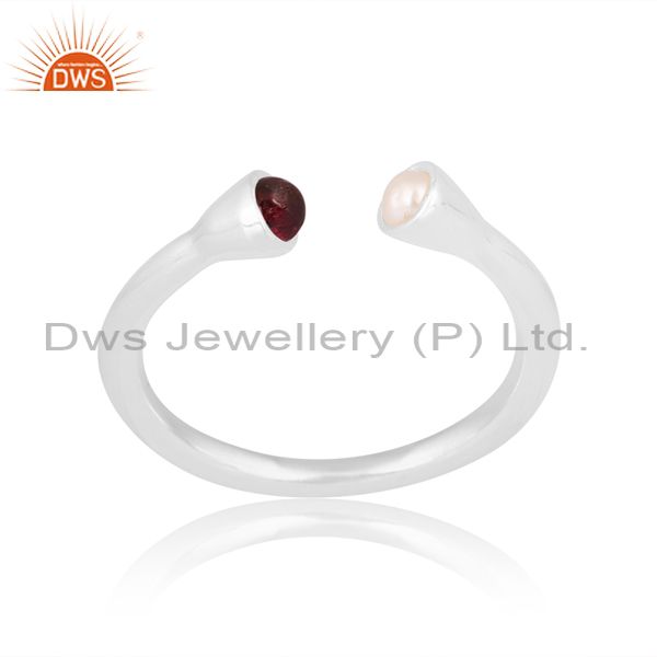 Sterling Ring With Garnet & Pearl Cabochon Round Cut Gem