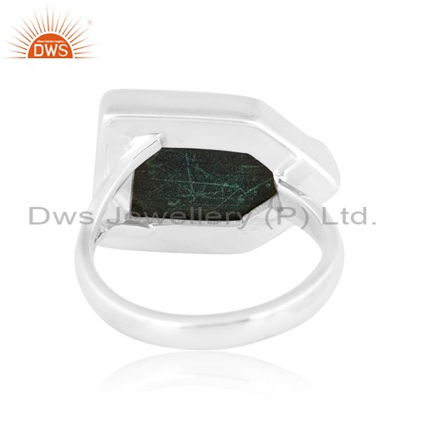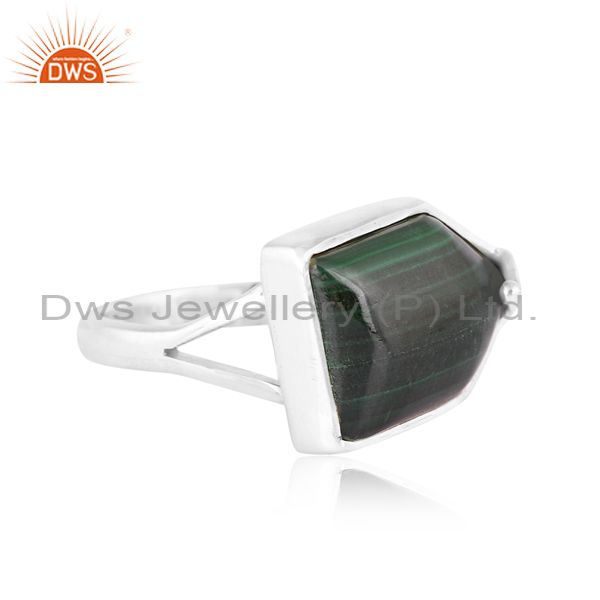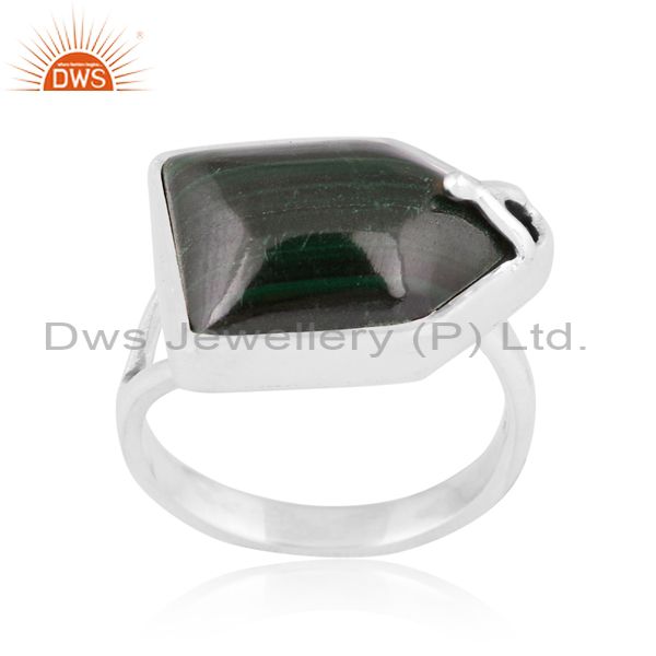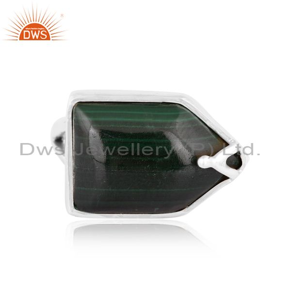 Sterling Ring With Malachite Cabochon Pentagon Cut Stone