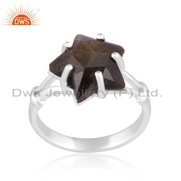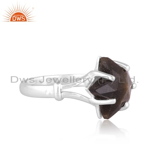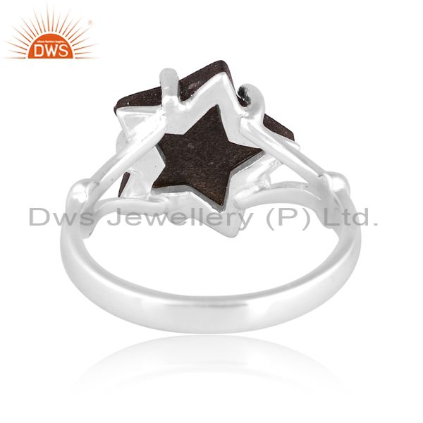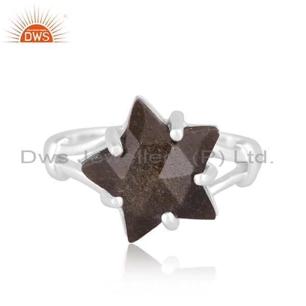 Sterling Ring With Star Cut Obsidian Checker Stone 3.15 Cts