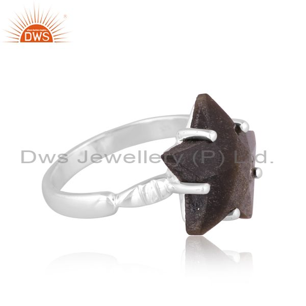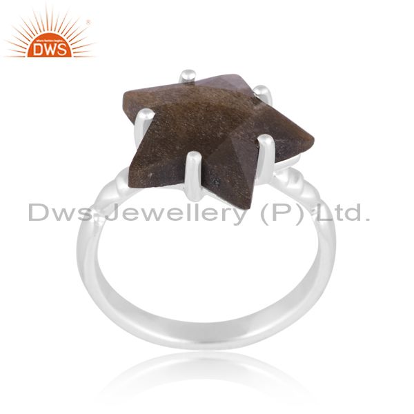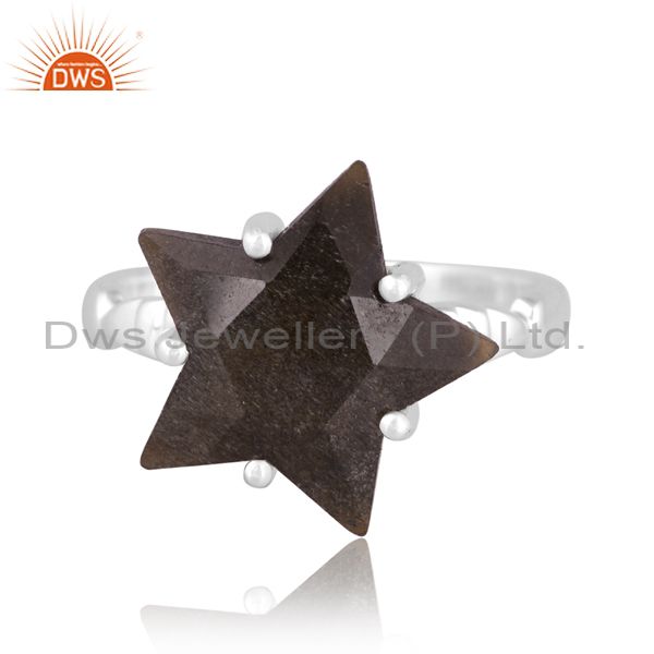 Sterling Ring With Star Cut Obsidian Checker Stone 4.16 Cts