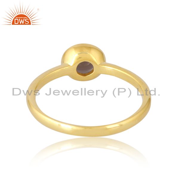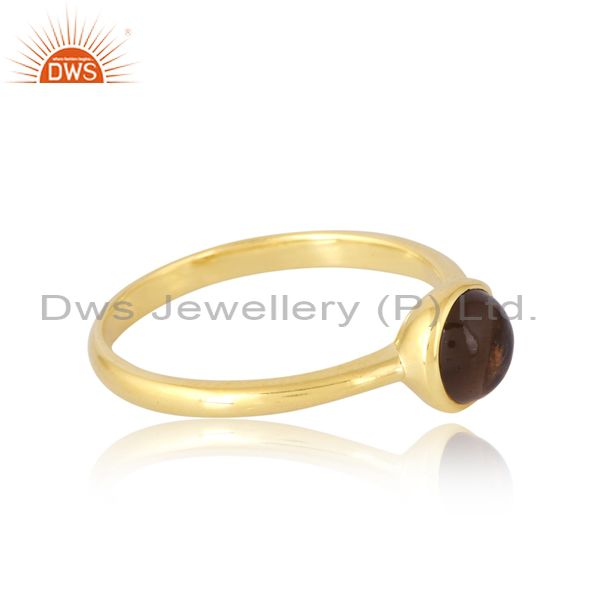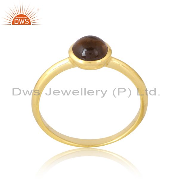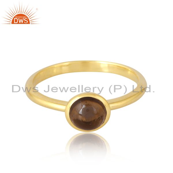 Sterling Silver & Gold 18K Smoky Cabushion Round Ring
