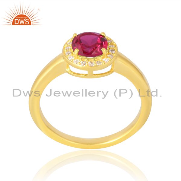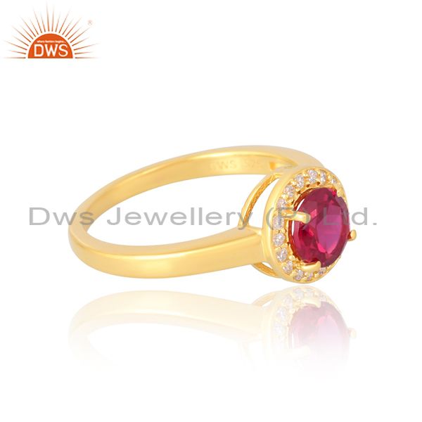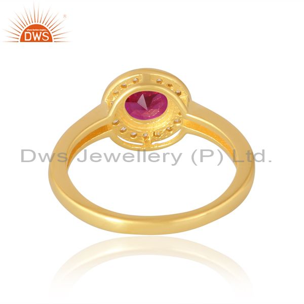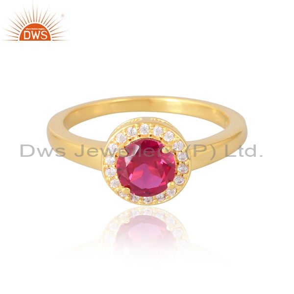 Sterling Silver 18K Gold Plated Round Ruby Cz Ring