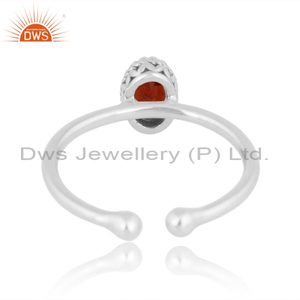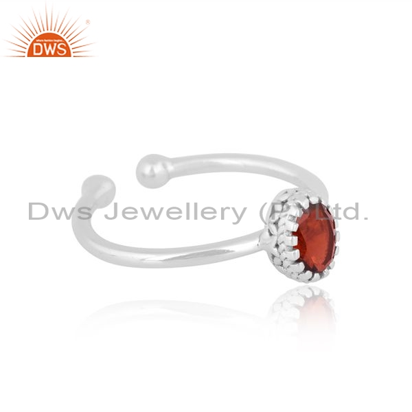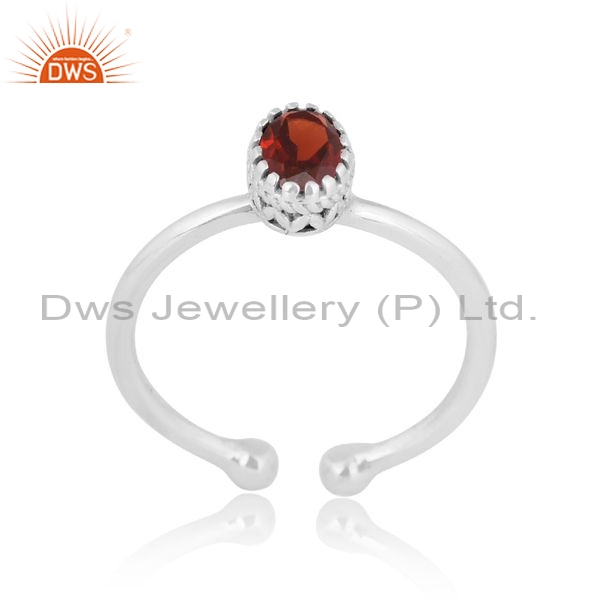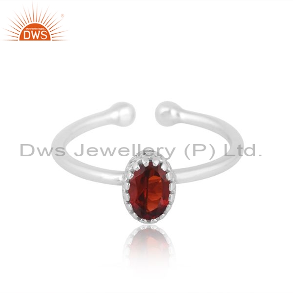 Sterling Silver Adjustable Ring With Garnet Cut Stone
