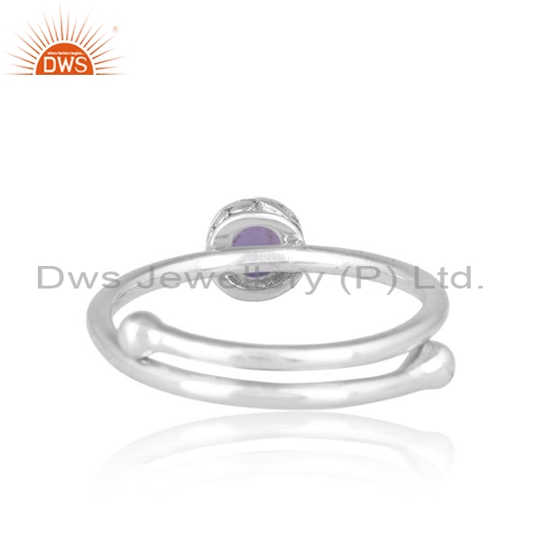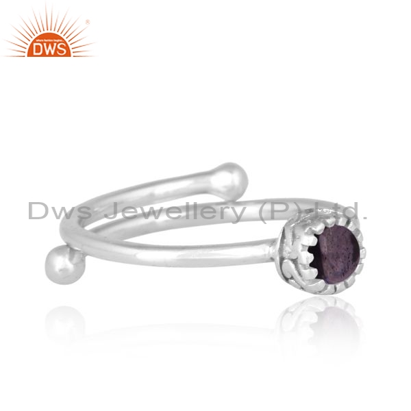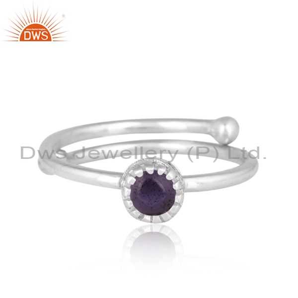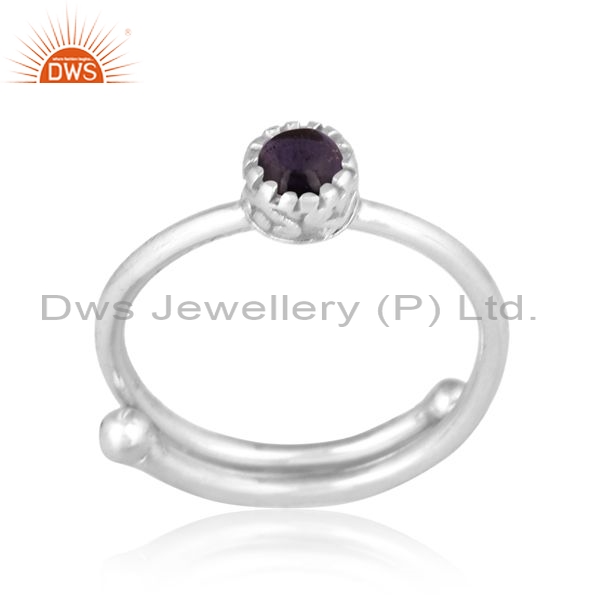 Sterling Silver Adjustable Ring With Iolite Round Cut Stone