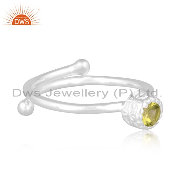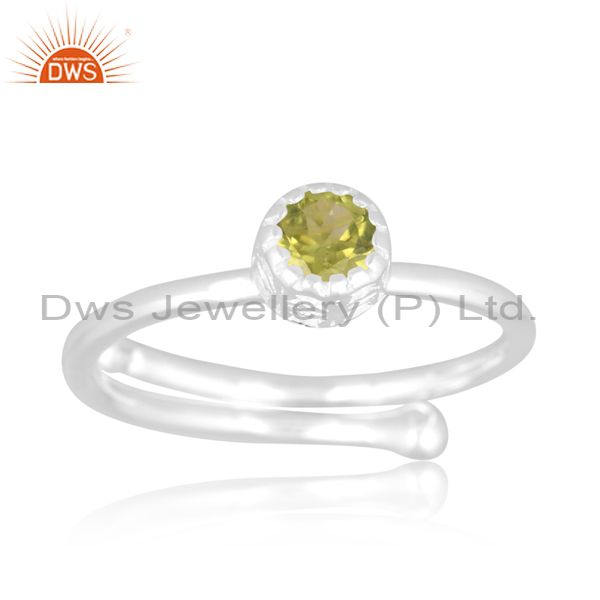 Sterling Silver Adjustable Ring With Peridot Round Cut Stone