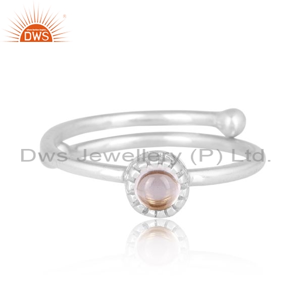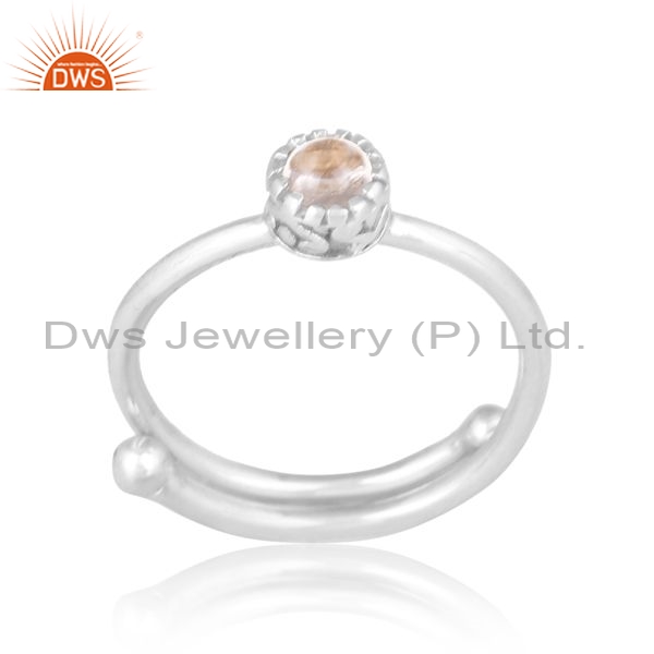 Sterling Silver Adjustable Ring With Quartz Crystal Round