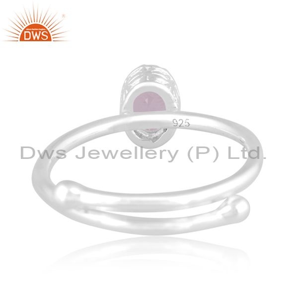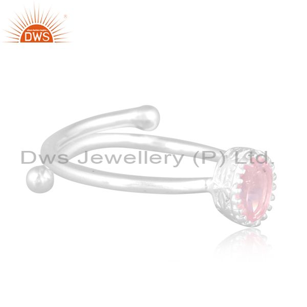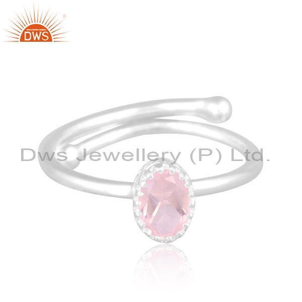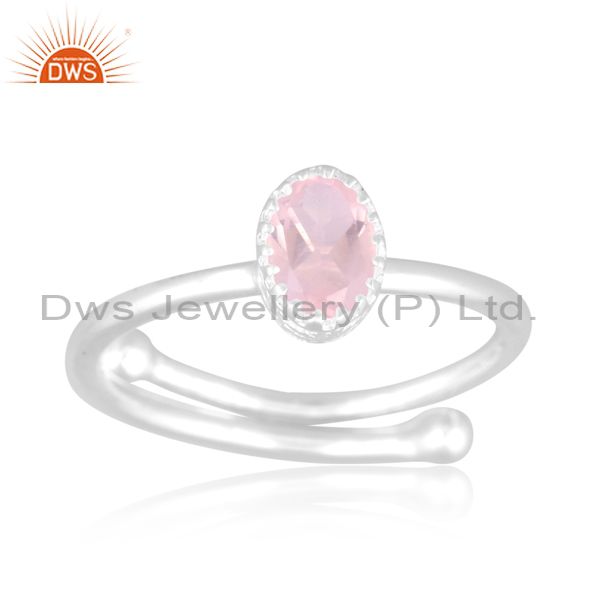 Sterling Silver Adjustable Ring With Rose Quartz Cut Stone