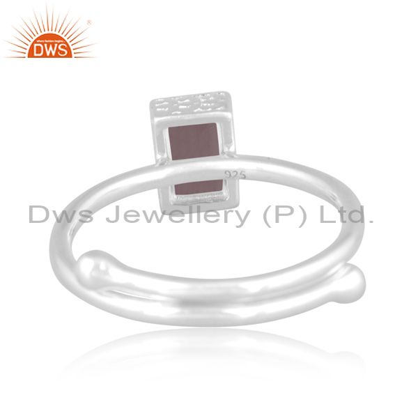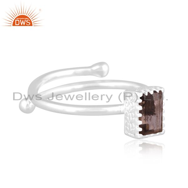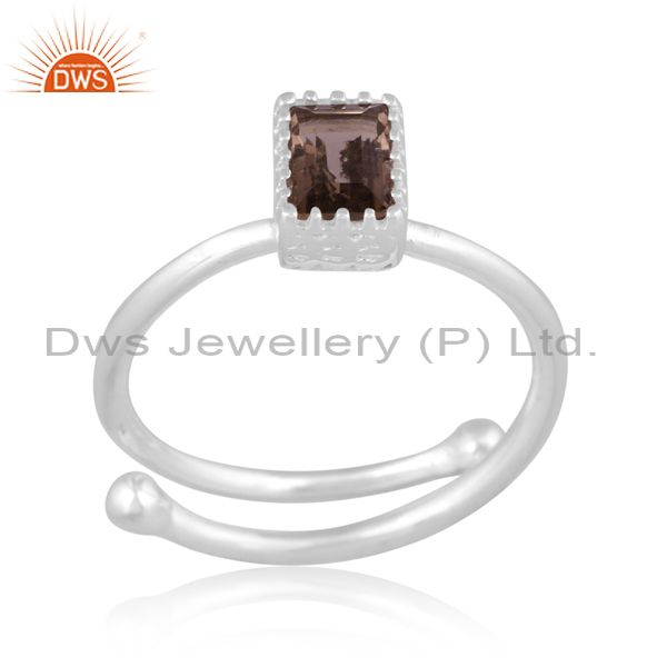 Sterling Silver Adjustable Ring With Smoky Baguette Stone
