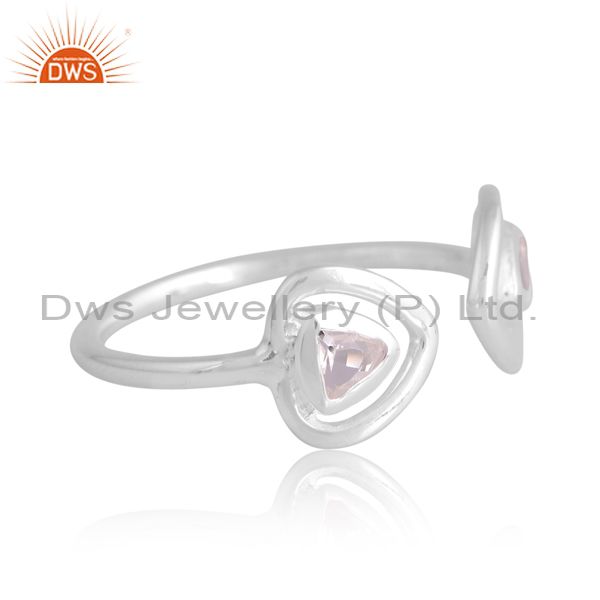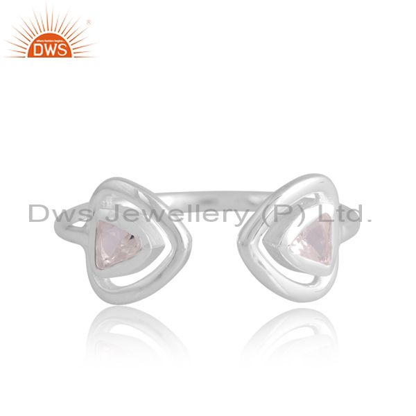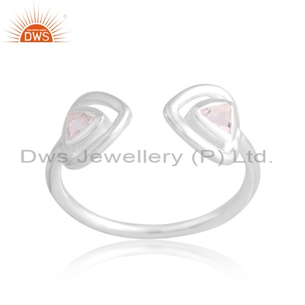 Sterling Silver Adjustable White Ring With Quartz Cut