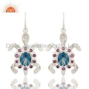 Sterling Silver Amethyst & London Blue Topaz Tortoise Design Fine Gemstone Ring