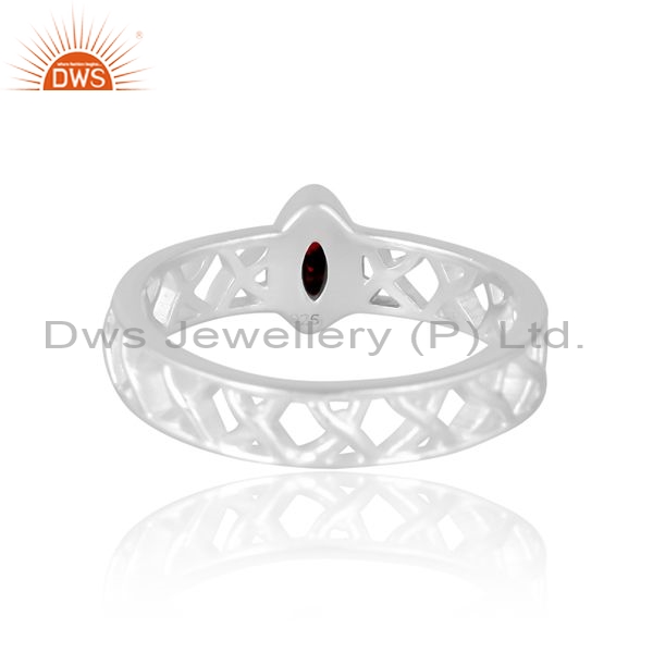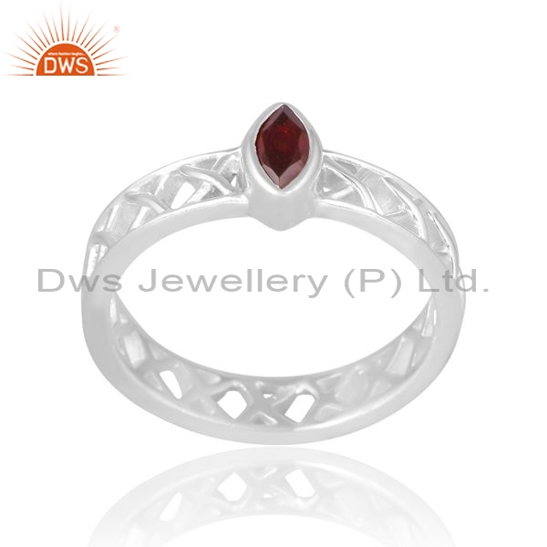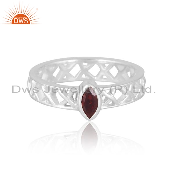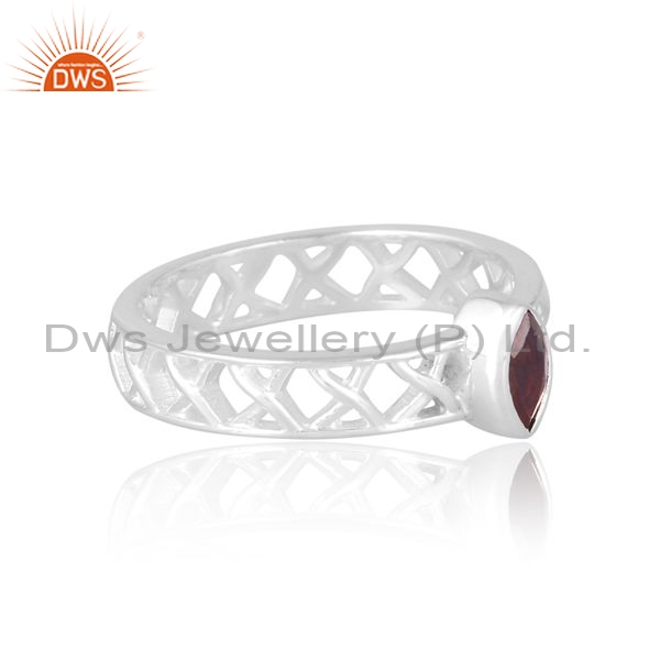 Sterling Silver Cross Cross Ring With Garnet Cut Stone