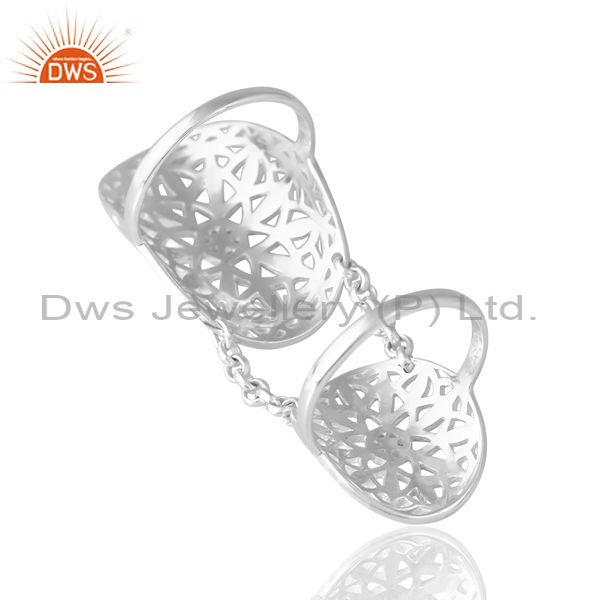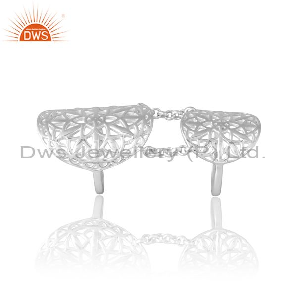 Sterling Silver Double Ring With Chain Connector