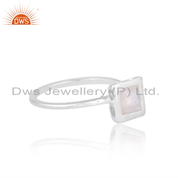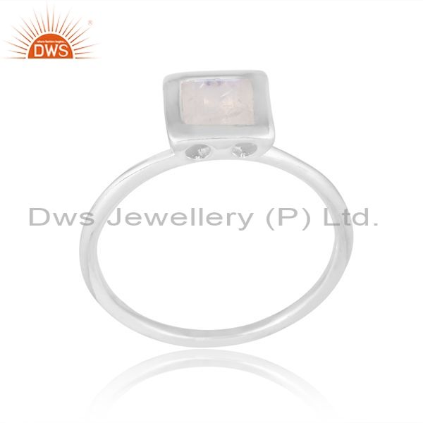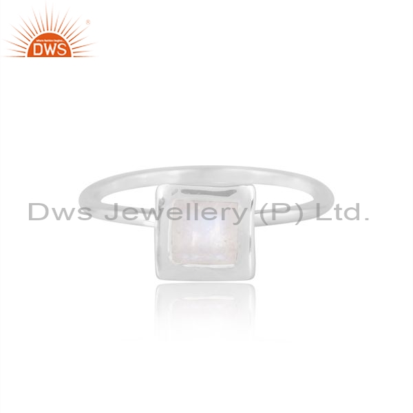 Sterling Silver Earring With Rainbow Moonstone Square Cut