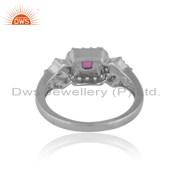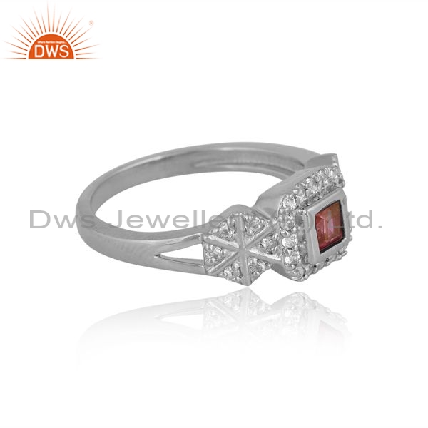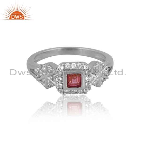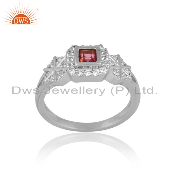 Sterling Silver Engraved Ring With Pink And White Topaz