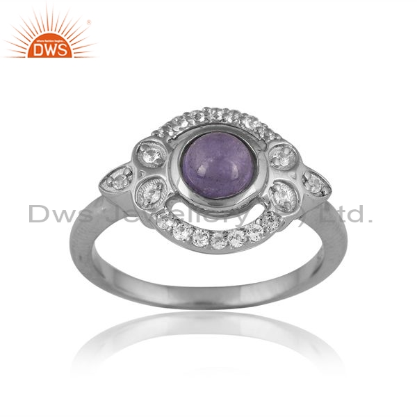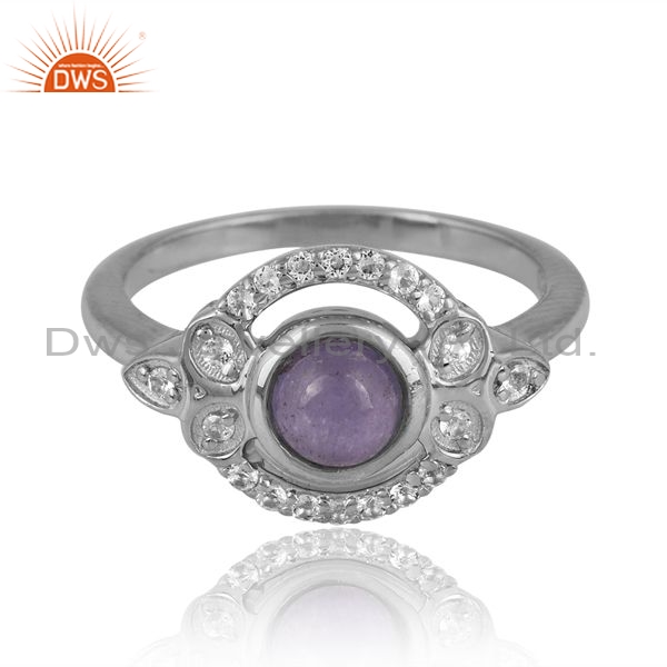 Sterling Silver Eye Ring With Tanzanite And White Topaz
