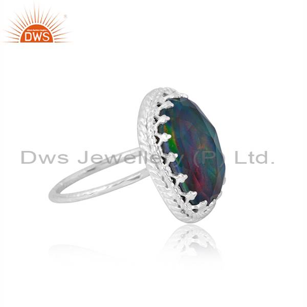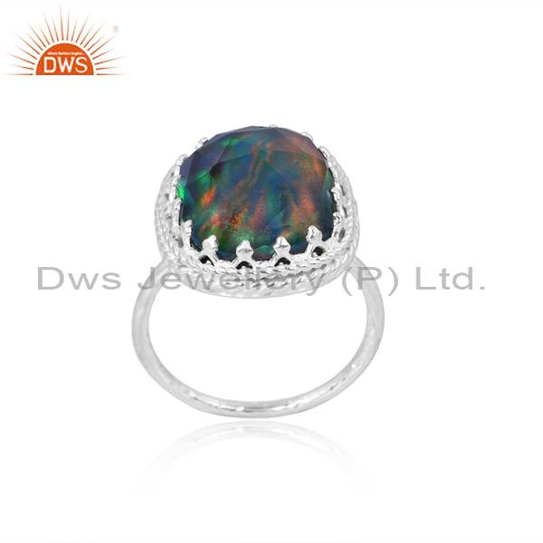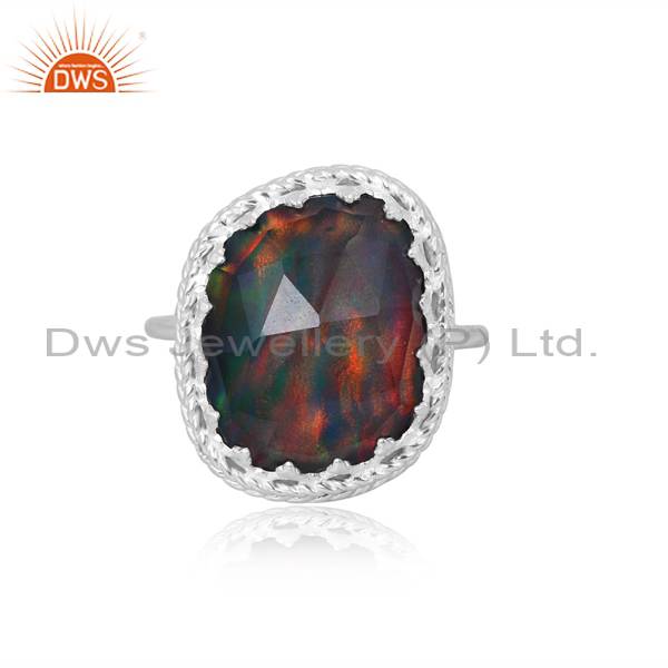 Sterling Silver Finger Ring - Unshape Aurora Opal Red Green
