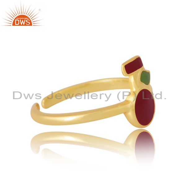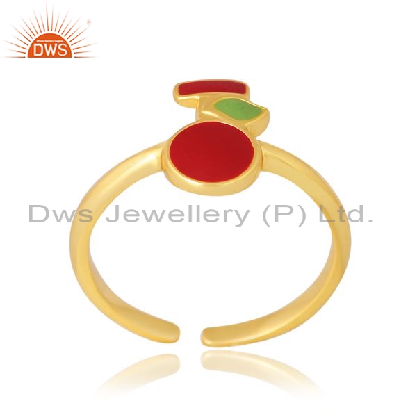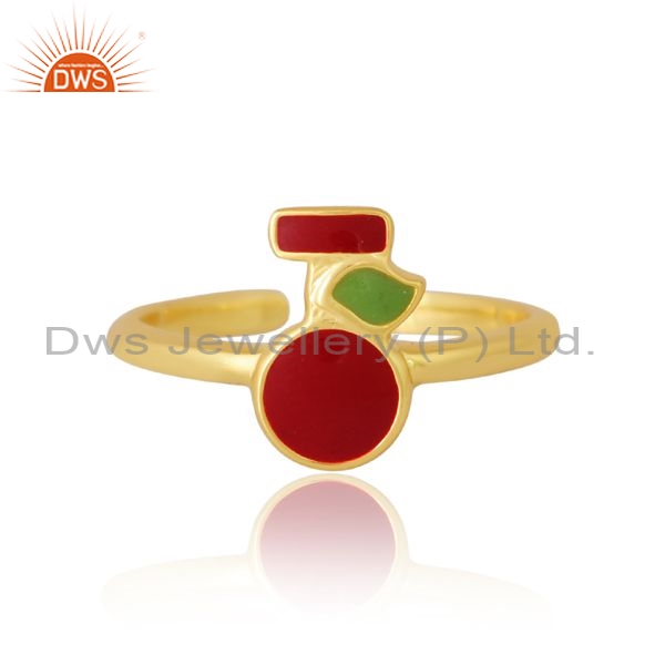 Sterling Silver Gold 18K A Ring With Green And Red Enamel