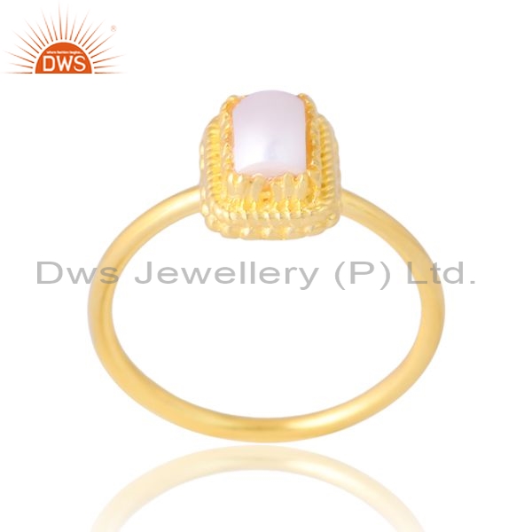 Sterling Silver Gold 18K Ring With Pearl Beads